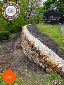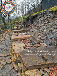 specification. This year's winter took me to a beautiful cottage in the picturesque village of Uppermill, Greater Manchester to redesign and rebuild a magnificent thirty metre long by two metre high retaining dry stone wall. Starting in the winter frost, working in mud, sleet, plenty of rain and finishing in the glorious spring sunshine the job was both challenging and very rewarding.